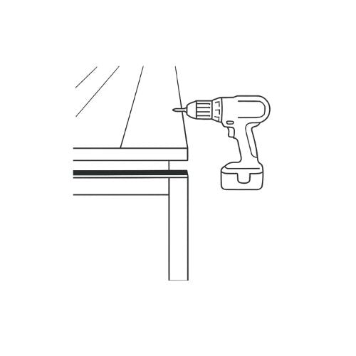 Alle 15 cm in der Breite über die Länge der Tischplatte verlaufend, jeweils ca. 15 cm von den Stirnseiten endend |